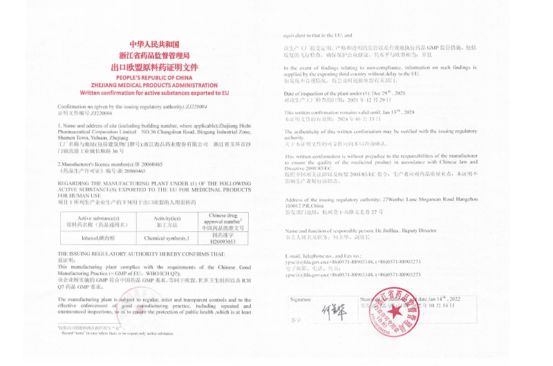 浙江海昌藥業(yè)股份有限公司(簡(jiǎn)稱(chēng)“海昌藥業(yè)”)原料藥(碘海醇)合成三車(chē)間、精烘包車(chē)間、生產(chǎn)線(xiàn)1通過(guò)GMP符合性檢查。